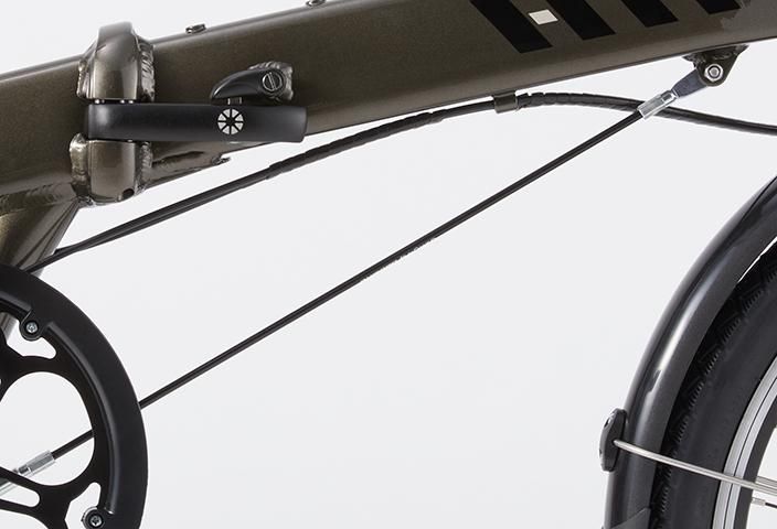 アルミフレームに採用した折り畳み機構は強力な「Vクランプ」や、上位機種にも採用している「ラディアスハンドルポスト」も装備をしていて、ベースフレームには一切の妥協がありません。